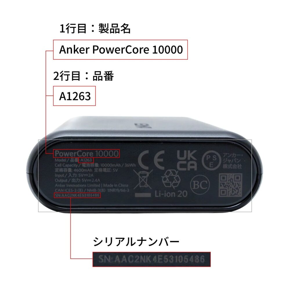 今回リコール対象となっているモバイルバッテリーはAnker PowerCore 10000です。品番はA1263。